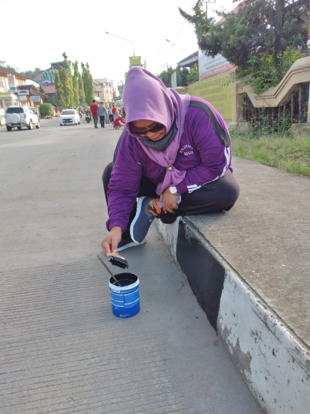 Kegiatan gotong royong mengecat trotoar dan median jalan bersama Wali kota Samarinda dan OPD